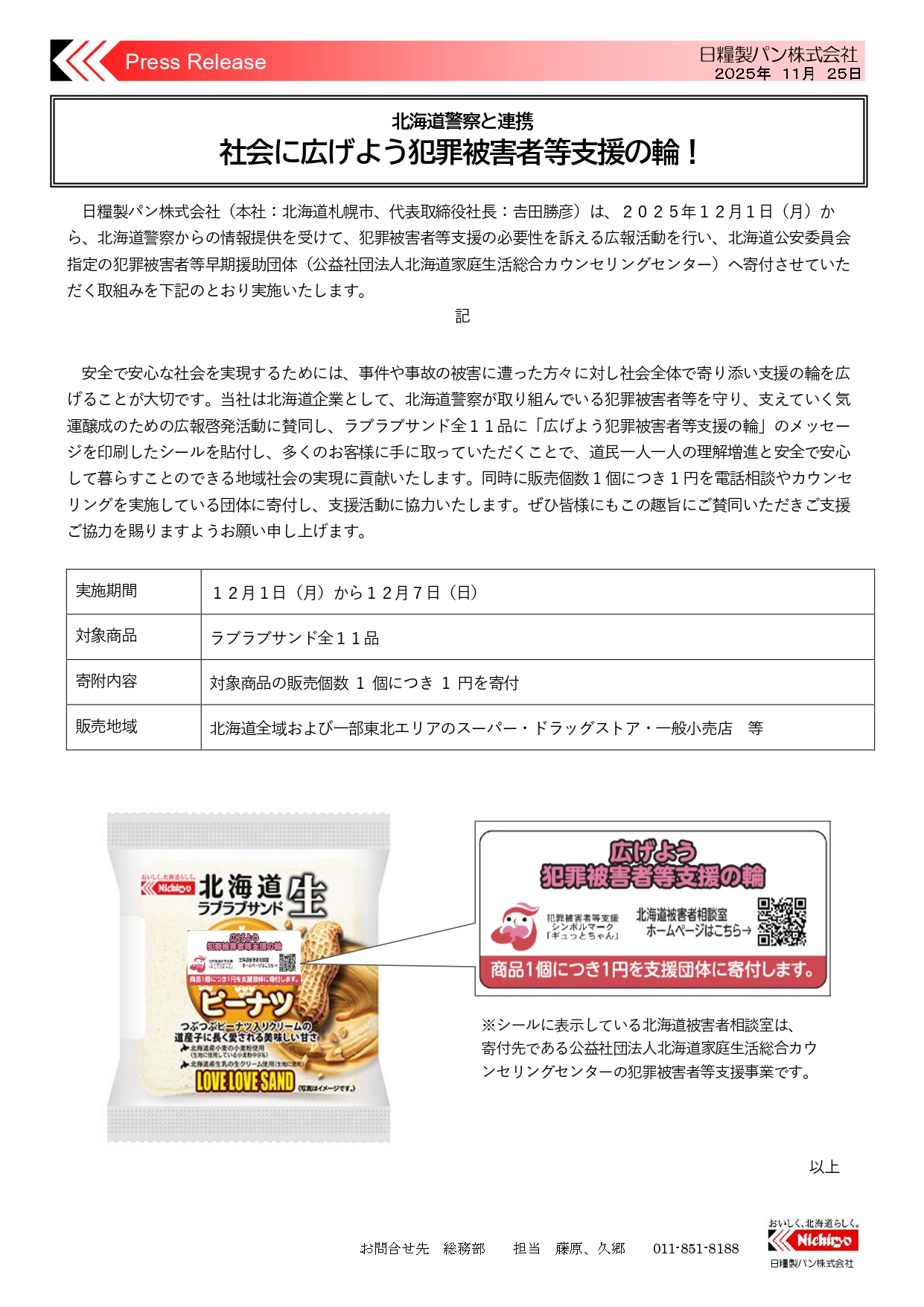 日糧製パン株式会社による犯罪被害者等支援キャンペーンのお知らせ